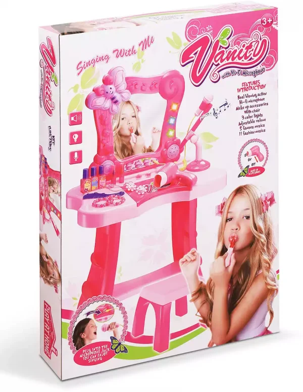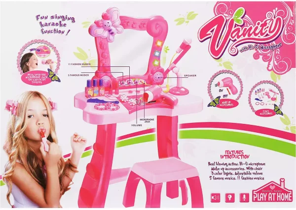Խաղալիք զարդասեղան վարդագույն աթոռով, բարձրախոսով և ֆենով