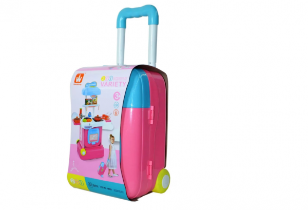 Այս հարմարավետ և գունեղ ճամպրուկով խոհանոցը կատարյալ նվեր է փոքրիկ խոհարարների համար։ Այն հեշտությամբ փոխակերպվում է ճամպրուկից լիարժեք խոհանոց՝ ներառելով բոլոր անհրաժեշտ պարագաները՝ տապակ, կաթսա, սպասք և սննդի մոդելներ։