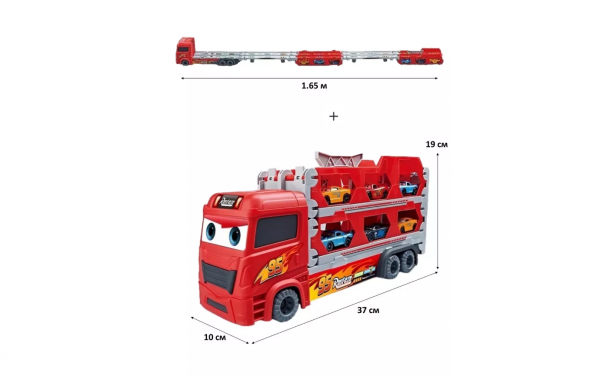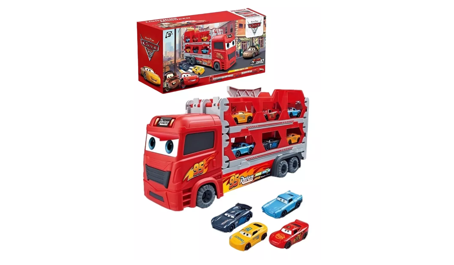 Այս հիանալի տրանսպորտյորը «Մեքենաներ» (Cars) սերիայից կդարձնի յուրաքանչյուր խաղ ավելի հետաքրքիր։ Մեծ կարմիր բեռնատարը ունի բազմահարկ հատվածներ փոքր մեքենաների համար, իսկ նրա վառ դիզայնը կրկնակում է սիրելի հերոսների ոճը։