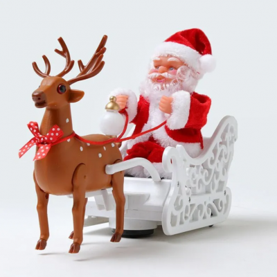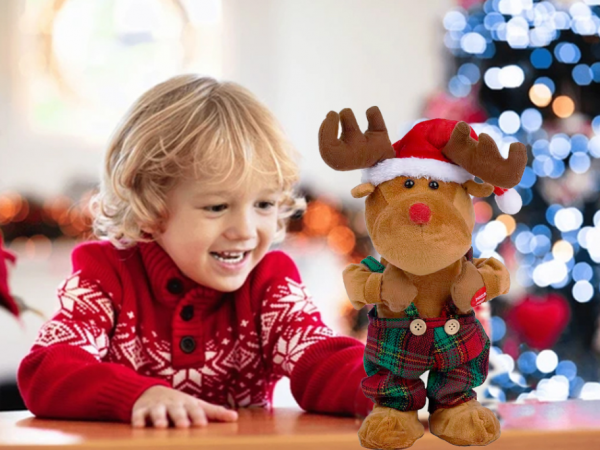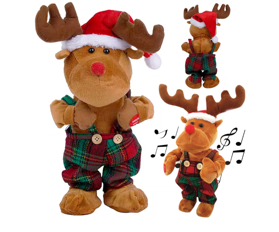 Երգող և պարող եղնիկ ձմեռ պապիկի գլխարկով