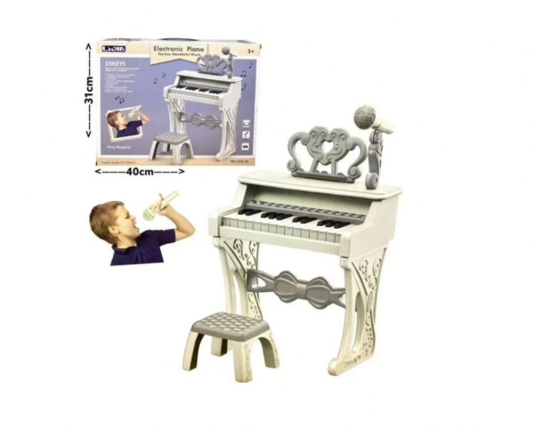 Այս նուրբ և էլեգանտ դիզայնով մանկական դաշնամուրը կատարյալ նվեր է յուրաքանչյուր փոքրիկ երաժշտասերի համար։ Բարձրորակ պլաստիկից պատրաստված կառուցվածքը կայուն է և անվտանգ, իսկ աթոռիկը ապահովում է հարմարավետ նստել՝ ստեղծելով իրական երաժշտական միջավայր։