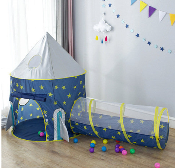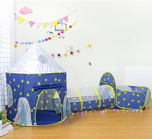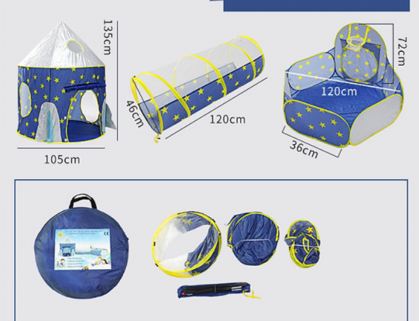 աստղիկներով այս մանկական վրան – տնակ – մանեժը հիանալի հավաքածու է Ձեր երեխաների առօրյան խաղերի համար, այն իր մեջ ներառում է, վրան- տնակ հրթիռի տեսքով, մանեժ, որը հեշտությամբ ծալվում է և կտորից խողովակ։ Հավաքածուն հնարավոր է օգտագործել առանձին առանձին։