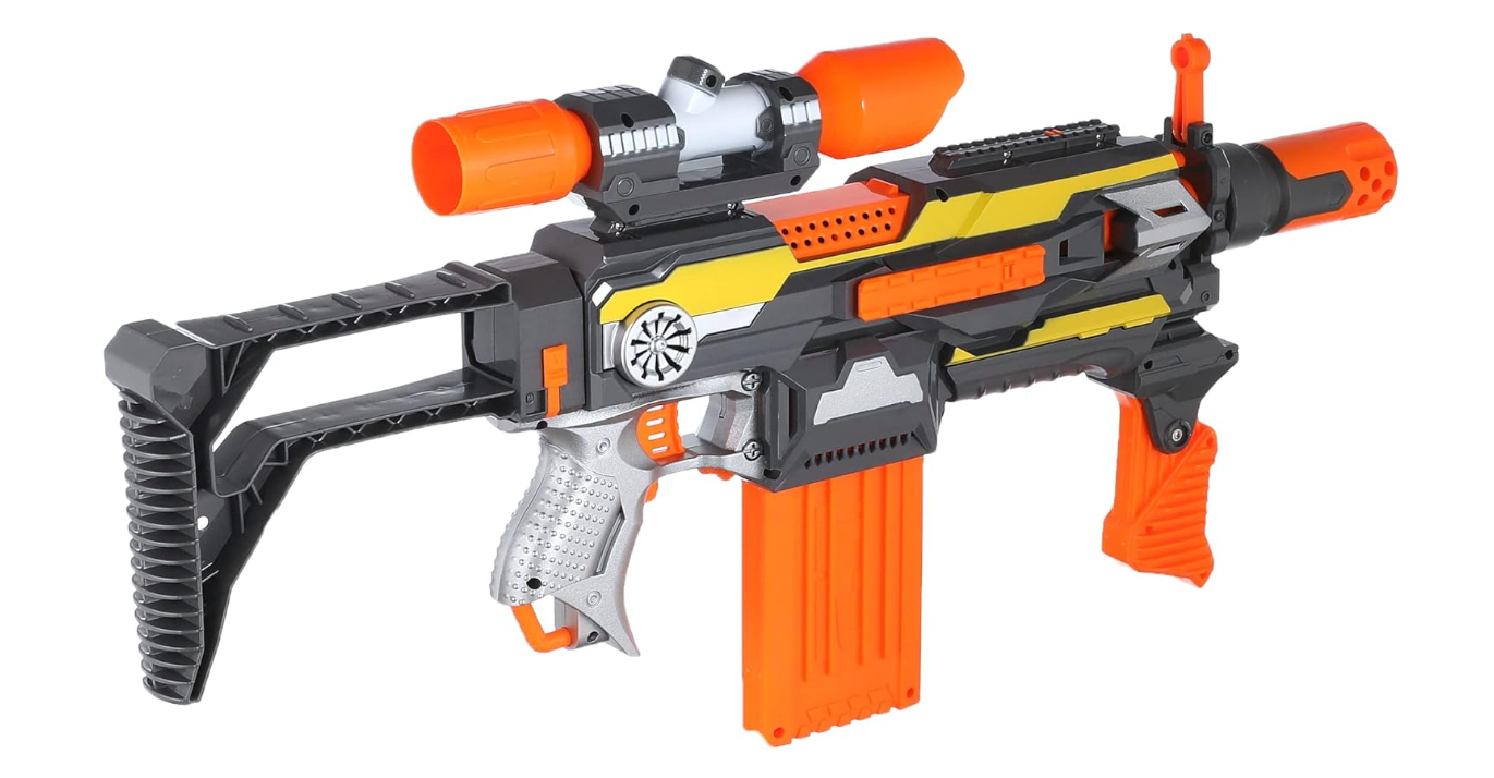 Դիմացկուն և հետաքրքիր խաղալիք հրացան է՝ նախատեսված ակտիվ ու շարժուն խաղերի համար։ Այն ունի մեծ չափի պահունակ (մագազին), հարմար բռնակ, հեռադիտակային ձևով վերին օպտիկական