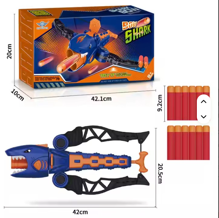 Դինամիկ և զվարճալի խաղալիք է, որը միավորում է աղեղի կառուցվածքն ու բլաստերի կրակման մեխանիզմը։ Շնաձկի տեսքով առաջամասը խաղին ավելացնում է ավելի հետաքրքիր ու մարտական